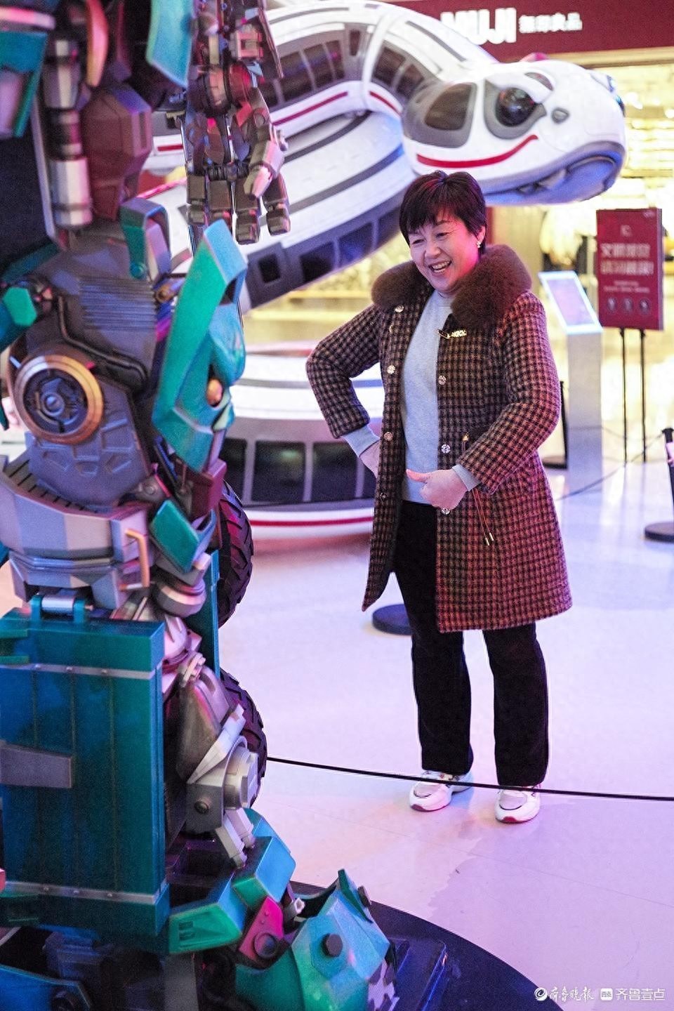 2月21日,在济南领秀城贵和购物中心,来逛商场的张敏趁着空闲架起手机,开心地在网络平台上唱起豫剧 。